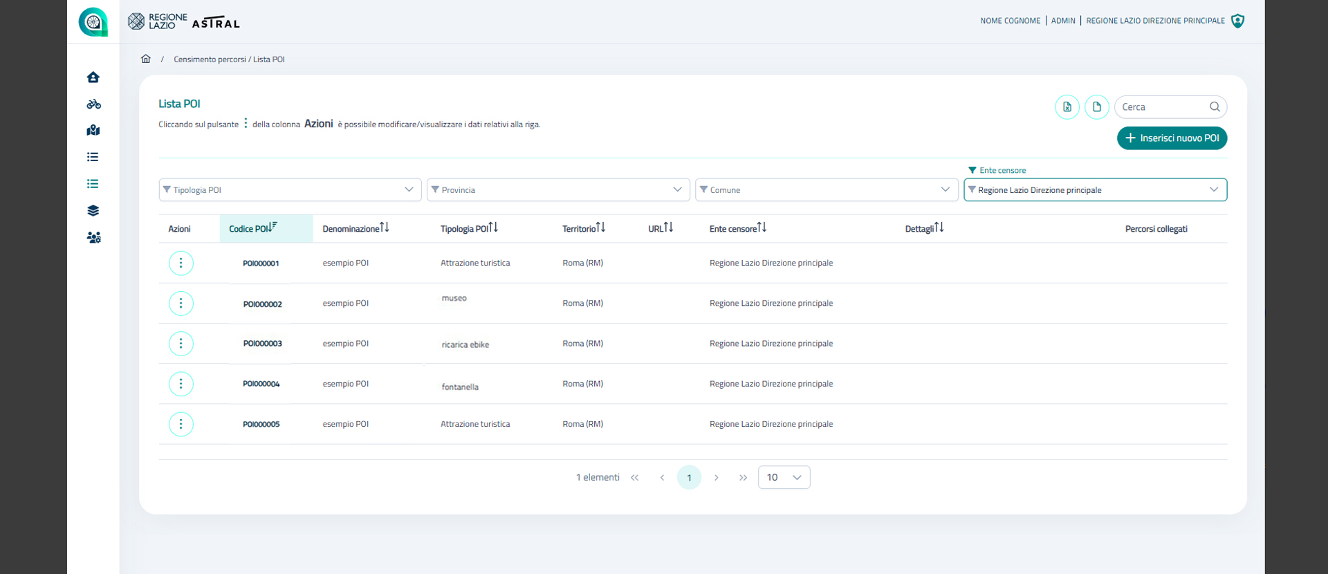 e standardizzato la rete di percorsi ciclabili e ciclopedonali e dei relativi Punti di Interesse (POI) del territorio regionale.